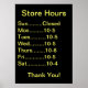 Grand Signe à afficher dans votre fenêtre. Permet aux gens de connaître vos heures. Une encre résistante à l'éclat, ne gaspillez pas votre argent sur les autres ! Totalement personnalisable. S'il vous plaît "signet" ce site, merci. Découvrez quelques-uns de nos autres grands designs !