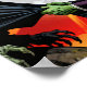 Frankenstein's monster confronts a skeleton-like figure under a full moon. The dramatic backdrop includes a fiery sky, enhancing the intensity.