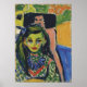 "Fränzi avant une chaise sculptée" d'Ernst Ludwig Kirchner, un puissant portrait expressionniste allemand chargé de couleur, de forme et d'intensité moderne. Un chef-d'oeuvre remarquable du début du XXe siècle, parfait pour les affiches, les tasses et bien plus encore.