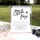 Si vous prévoyez un mur de photos ou un photomaton amusant pour votre mariage ou votre fête de fiançailles, ce panneau est pour vous ! Placez-le à côté de vos accessoires pour que les invités sachent quoi faire. Design moderne et chic en noir et blanc avec la mention "strike a pose" en lettrage manuscrit et quelques lignes rimées pour guider vos invités. Personnalisez avec vos noms et la date du mariage, et ajoutez un hashtag de mariage facultatif pour que les invités puissent partager sur les réseaux sociaux.