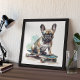 aquarelle d'un mignon bulldog français assis sur un skateboard