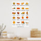 Une collection complète de fruits et légumes oranges, dessinée par Vegan-Nutritionista.com.