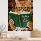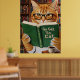 Poster Funny Adorable Reading Cat Art Coffee Tabby Cat