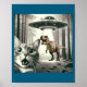Poster Funny Cat Selfie With Alien Ufo And T-rex Dinosaur