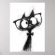 Poster Funny Minimalist Whimsical Nerd Cat with Glasses