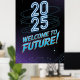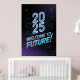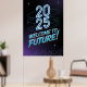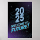 Admirez le look visionnaire cosmique avec cette affiche sur le thème futuriste, qui présente un texte brillant "2025" et un décor stylé et serein. C'est un mélange saisissant de teintes néon et d'art de pointe.