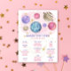 WATERCOLOR Invitation d'anniversaire à thème pour la galaxie magique de l'espace extra-atmosphérique. Planètes et étoiles en couleur rose, violet, or.