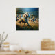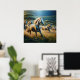 Une peinture vibrante qui capte l'essence d'un troupeau de chevaux qui courent à travers un champ verdoyant, leurs puissants muscles en mouvement, qui donnent un coup de pied à la poussière et à l'herbe dans leur sillage.