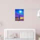 Affiche illustrant un jeune garçon sur la plage la nuit, regardant une pleine lune et un ciel étoilé