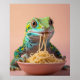 Poster Gecko Drôle Manger Spaghetti