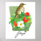 A poster decorated with a Brown Thrasher bird on the branch of a peach tree with a white Cherokee rose flower over the state shape hand drawn with ink and painted with watercolor. Inspired by the state bird and state flower of Georgia. Nice Georgia college room decor. Celebrate the "Peach State!"