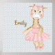 Design doux pour les chambres pour petites filles dispose d'une girafe aquarelle en tenue de ballerine rose avec bandeau assorti sur arrière - plan à motifs géométriques pastel. Personnaliser avec nom personnel