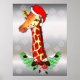Une girafe adorable aux grands yeux et un chapeau de santa confectionnent la tenue de Noël d'un enfant sucré ou la portent vous-même pour célébrer la gentillesse à Noël.