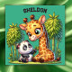 Le panda le plus mignon partage son bambou avec une girafe en vert et marron. Affiche.
