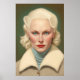 Portrait peint dans un style du début du XXe siècle d'une femme nordique aux cheveux blancs et aux yeux bleus saisissants. Il s'agit d'un autre design 100% original Snuggle Hamster.