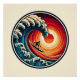 Découvrez l'émotion de l'océan avec cette oeuvre d'art circulaire vibrante qui présente une vague audacieuse sous un coucher de soleil enflammé. Le design présente une silhouette de surfeur audacieuse contre l'interaction spectaculaire des oranges chaudes et des rouges dans le ciel, se mélangeant harmonieusement avec les bleus cool de l'eau. Parfait pour ceux qui chérissent l'aventure, la liberté et la beauté brute de la nature, cette pièce rayonne d'énergie et de mouvement. Idéal pour vêtements, décors ou accessoires.