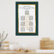 Ajoutez votre touche spéciale à ce design élégant avec script moderne, texte vert et noir, y compris un arbre de Noël en or étoilé avec cadre en or métallique. Ce tableau de sièges présente les noms de la mariée et du marié ainsi que les mots "Mangez, Buvez et Soyez Joyeux" et "S'il vous plaît, trouvez votre siège". Les modèles peuvent accueillir jusqu'à sept tables et jusqu'à 8 ou 9 noms par table.