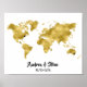 Poster Gold Foil World Map avec les couples de coeurs