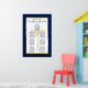 Ajoutez votre touche spéciale à ce design élégant avec script moderne et texte bleu marine, y compris une silhouette artistique de palmier doré avec un cadre en cuivre or métallique. Ce tableau de sièges présente les noms de la mariée et du marié ainsi que les mots "Mangez, Buvez et Soyez Joyeux" et "S'il vous plaît, trouvez votre siège". Les modèles peuvent accueillir jusqu'à sept tables et jusqu'à 10 ou 11 noms par table.