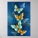 Composition de flying, jewelry, or et dark butterflies on textured jewelry background. Golden butterfly.