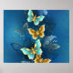 Composition de flying, jewelry, or et dark butterflies on textured jewelry background. Golden butterfly.