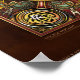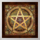 Cela fait longtemps que j'étais païen (je ne fais plus de dieux), alors ne sautez pas trop de conclusions ici ; je voulais simplement faire quelque chose d'intéressant avec une forme audacieuse incrustée de nouages, et j'ai pensé que ce serait une image vraiment frappante. Finalement, j'ai fait quelque chose de similaire avec une croix celte, juste pour bouder les eaux théologiques encore plus, ou pour donner le même temps, ou quelque chose comme ça - parce que c'est aussi un symbole frappant dans sa version celtique. J'ai fait deux traitements du pentacle, l'un d'or et l'autre d'argent ; chacun est essentiellement le même sauf pour sa palette. Il y a dix-huit dragons de "bête qui s'accroche" - dix dans le cercle, huit dans les coins - avec plusieurs panneaux de bandes entrelacées - et bien sûr le pentacle lui-même est ici transformé en un design de nouage.