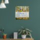 Paysage d'imaginaire royal paon blanc et bleu-vert dans un temple tropical entouré de verdure et décoré de bijoux en plumes d'or moderne pour un mariage ou un design de décoration pour guider votre client vers votre livre d'hôtes.