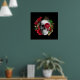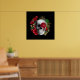 Poster Goth Crâne avec Fleurs rouges et Feuilles d'or