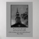 Une flèche et une horloge d'église solitaire s'élèvent contre un ciel nocturne avant-gardiste sur cette affiche sinistre. Citation de Bram Stoker, de 'Dracula'. ~ Partie de la collection gothique. ~