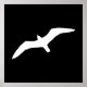 Forme de goéland en blanc sur noir.