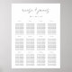 Le tableau de bord moderne et minimaliste des mariages peut accueillir jusqu'à 12 tables de 10 ou 120 convives. Vos noms et votre date de mariage ou d'événement apparaissent en haut en lettres noires douces.