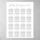 Le tableau de bord moderne et minimaliste des mariages peut accueillir jusqu'à 16 tables de 10 ou 160 convives. "S'il vous plaît trouvez votre siège" ou votre choix de texte apparaît en haut en lettres noires douces.