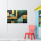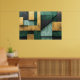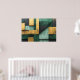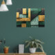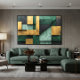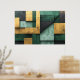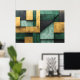 Geometric abstract art with blocks in emerald green, mustard gold, and gray. Texture resembling concrete and stone. Modern and sophisticated design. Ideal for interior decoration, offices, and wall art. A balanced composition that brings elegance and visual structure to any environment.