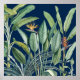 forêt tropicale Imaginaire avec bananier, feuilles de jungle verte et oiseau fleuri du paradis sur un arrière - plan bleu marine. Vous pouvez modifier la couleur de l'arrière - plan en cliquant sur le bouton "Personnaliser" puis sur l'inscription "Cliquez pour customiser plus loin".