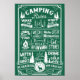Poster de camping blanc vert avec arrière - plan vert et lettrage blanc. Règles amusantes pour votre invité visitant votre site de camping.