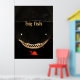 Ce dessin dominant en noir illustre une grande illustration effrayante de requin qui suit un petit poisson rouge. Vous pouvez personnaliser le texte par défaut "big fish".