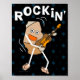 Le texte de Rockin avec un joyeux rock jouant une guitare est un design musical amusant pour les musiciens, les étudiants et les enseignants à l'anniversaire et les vacances.
