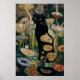 Poster Gustav Klimt Chat noir dans un jardin de fleurs, A