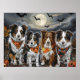 Libérez l'esprit éffrayant avec ce design d'Halloween étrange avec une meute de chiens sous un ciel sombre et clair de lune, entourée de chauves-souris volantes et de citrouilles brillants. Parfait pour ceux qui aiment une touche de plaisir effrayant avec leurs amis en fureur !