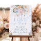 Ce panneau d'accueil pour la douche nuptiale présente un design floral bleu printanier poussiéreux. L'en-tête de script est une image qui ne peut pas être modifiée. Tous les autres textes sont entièrement modifiables. Pour une personnalisation plus avancée de cette conception, il suffit de cliquer sur le bouton "Customiser" ci-dessus.