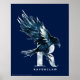 Découvrez ce corbeau de la maison Serdaigle à l'aquarelle bleue atterrissant à côté d'une lettre "R" serif.