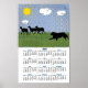 Voici une silhouette d'ombre noire d'un chien berger australien conduisant les moutons. L'affiche simple est lumineuse et joyeuse avec le chien sur l'herbe verte, les nuages blancs bouffants, le ciel arrière - plan texturé bleu, le soleil jaune et les silhouettes d'oiseaux volant au-dessus de la tête.