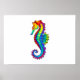 Artistiquement dessiné, lumineux, arc-en-ciel, cheval de mer polygonale sur arrière - plan blanc. Un tatouage brillant.
