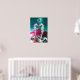 POSTER HIPPOCAMPES AMOUREUX , PINK TEAL BLEU MÈRE PERLE