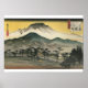 Utagawa Hiroshige (1797 - 12 octobre 1858) était un artiste ukiyo-e japonais, considéré comme le dernier grand maître de cette tradition. Hiroshige est surtout connu pour ses paysages, comme la série Les Cinquante-trois Stations du Tokaido et Les Soixante-neuf Stations du Kiso Kaido, et pour ses représentations d'oiseaux et de fleurs. Les sujets de son travail étaient atypiques du genre ukiyo-e, dont l'accent typique était mis sur les belles femmes, les acteurs populaires, et d'autres scènes des quartiers de loisirs urbains de la période Edo du Japon (1603-1868). La série populaire Trente-six Vues du Mont Fuji de Hokusai a eu une forte influence sur le choix du sujet de Hiroshige, bien que l'approche de Hiroshige était plus poétique et ambiante que les tirages plus audacieux et plus formels de Hokusai.