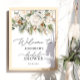 L'affiche de bienvenue de la Fête des mariées Florale Blanche d'hiver capture la beauté sereine d'un pays merveilleux d'hiver, alliant fleurs délicates et éléments à feuillage persistant naturels pour créer un design charmant et élégant. Le feuillage à feuillage persistant représente la force et la résilience, tout en créant un équilibre harmonieux avec les fleurs. La calligraphie élégante améliore le raffinement du design, avec un script fluide qui reflète les courbes délicates des fleurs. Qu'il s'agisse d'accueillir une douche nuptiale dans un cabine confortable ou d'un cadre urbain chic, ce design met en avant la beauté de la nature et l'élégance de l'hiver. Des éléments correspondants sont disponibles.