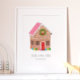Maison en pain d'épices illustrée à la main par Shelby Allison qui peut être personnalisée avec votre nom de famille.