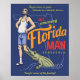"Imperméable à la douleur, immunisé au bon sens... l'extraordinaire Florida Man - Pensacola." Texte avec un opérateur qui mord la jambe d'un type, sur t-shirts, sueurs, cartes et cadeaux souvenirs.