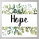 Le design est composé du mot Hope niché dans un bouquet de feuilles eucalyptus. Une partie de l'ensemble Foi/Espoir/Amour - 1 Corinthiens 13:13. Ça fait un grand cadeau !