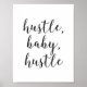 Ce design d'entrepreneur a "Hustle, Baby, Hustle" écrit dans un script gris foncé cursif. Parfait pour les entrepreneurs ou toute personne qui cherche après leurs rêves ou leur succès.